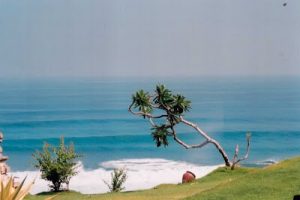 The colours of the deep, blue, turquoise, streaked with gold mid-morning, lashed with silver on moonlit nights, the towering white spume, surfers trying to hang 10 out there, the rippling pattern of the ceaseless waves; cotton puffs of clouds in an impossibly blue sky; emerald green turf on our front lawn; a lovely plunge pool wherein one tried to actually swim; the shrine to the Protectoress of the Sea out front… one woke up every day dreaming about actually living here for the rest of one’s life.