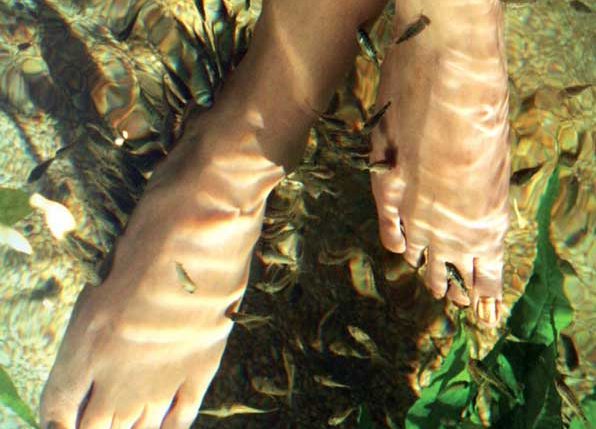 The fish are the Turkish spa fish or garra rufa, also known as doctor fish, and they have been doing what they are doing, since the 1950s. What they do is, basically, nibble at your feet, eating the dead skin, leaving the feet soft and clean as a newborn’s.