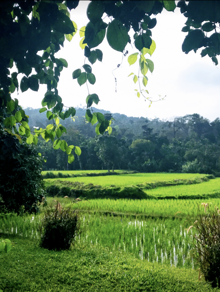 Given that Karnataka is getting its regular quota of monsoon rains after ages, everything is glinting a brilliant green. The paddy gleams, with egrets landing and taking off every few minutes. Fat pepper vines wind themselves lovingly around trees, and the air is scented with the fragrance of cardamom.