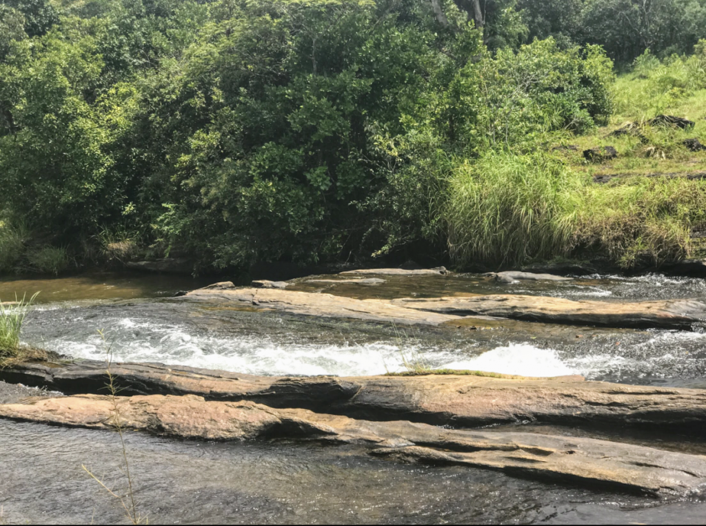 There are lovely streams that flow swiftly at times, languorously at other times, most of them rushing to join the Hemavati river. There are small but vigorous waterfalls at the edge of the forest, the water jumping whitely over jagged black rock. Looming over us in a benign fashion is the magnificent Western Ghats.