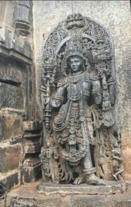 The second stop is at the 12th century Chennakeshava temple in the old Hoysala capital of Belur in Hassan district. The temple is simply stunning, every available surface of its facade covered in intricate sculptures and friezes. Inside, an array of carved pillars further stun the visitor into a delighted silence.