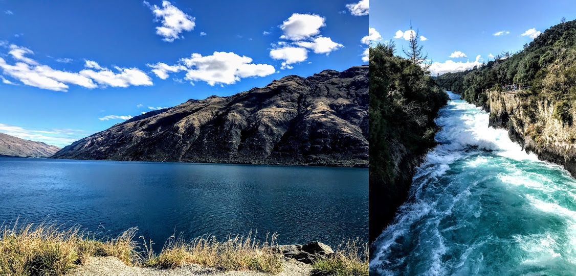 The deep blue of Lake Wakatipu; the ice-blue Waikato River