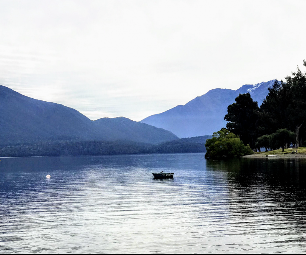 Lake Te Anau in the inland fjords is a study in cerulean blue.