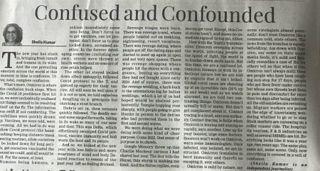 Confused and confounded The new year has slunk in, bringing fresh tumult and trauma in its wake. And the one prevailing emotion across the world at this moment in time is confusion. Utter, total, complete confusion. What`s more, Omicron is where the confusion buck stops. When the Covid-19 pestilence first hit us, we were undoubtedly…