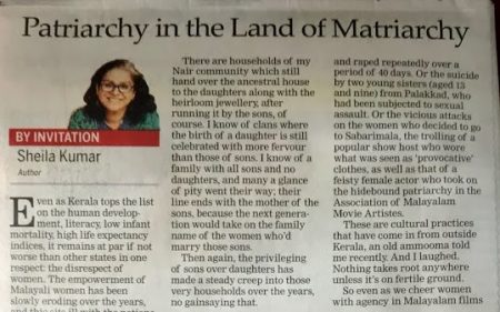 Patriarchy in the land of matriarchy Even as Kerala tops the list on the human development, literacy, low infant mortality, high life expectancy indices, it remains at par if not worse than other states in one respect: the disrespect of women. The empowerment of Malayali women has been slowly eroding over the years, and this…