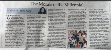 The morals of the millennial Y`know what? The millennials are doing well. Where there are millennials, there must be Baby Boomers. In fact, a congregation of Baby Boomers, shaking their head censoriously, waggling disparaging fingers, muttering sibilantly and not always below their breath. Just what is bothering all these Boomer uncles and aunties? Many things,…